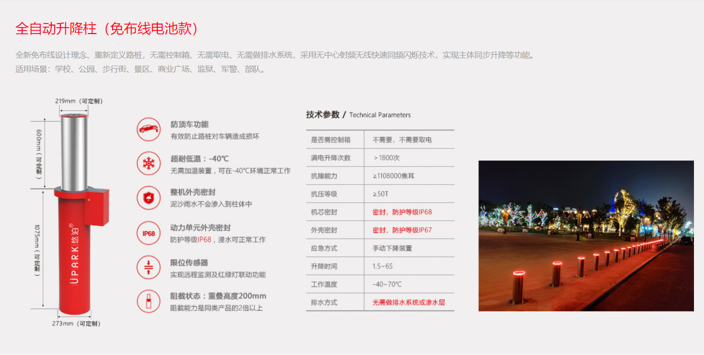 免布线电池款-全自动升降路桩