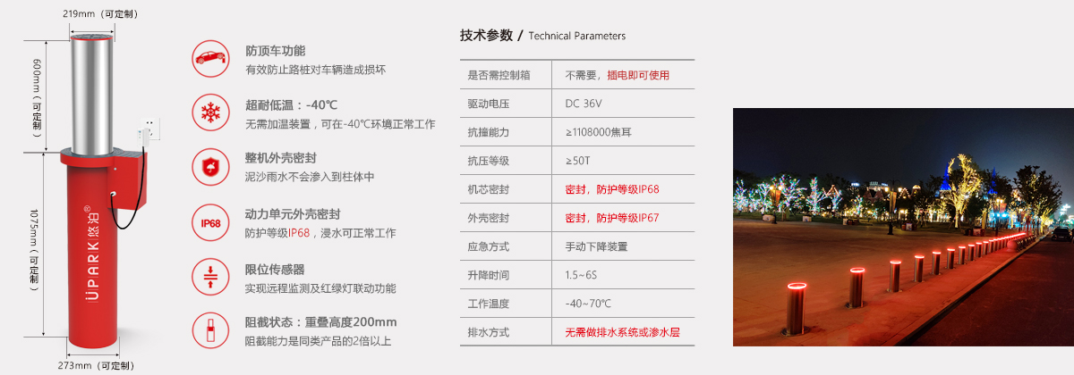 全新设计无控制柜、简化施工安装流程,且采用无中心射频无线快速同频闪烁技术,可与悠泊系列产品配套使用,实现LED同步闪烁/柱体同步升降等功能